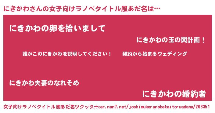 | 胡散臭い通販商品みたいなあだ名 | 『億万長者になれる水晶球…その名も「にきかわ」』 |