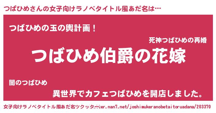 | 意味不明あだ名 | 『つばひめフォーエバー』『自称つばひめ』 |