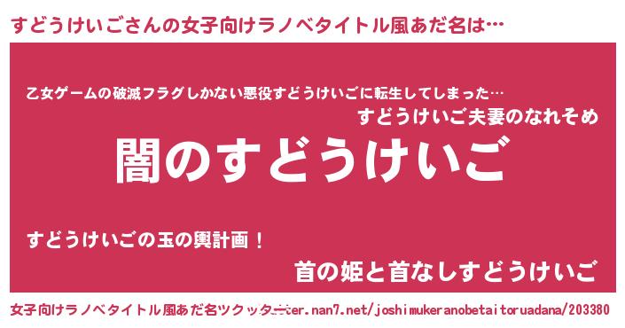 | 男性向けラノベタイトル風あだ名 | 『Re:すどうけいごから始める異世界生活』 |