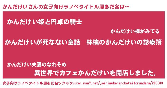 | ヘコむあだ名 | 『かんにゅー』『かんだけい(遠い目)』 |