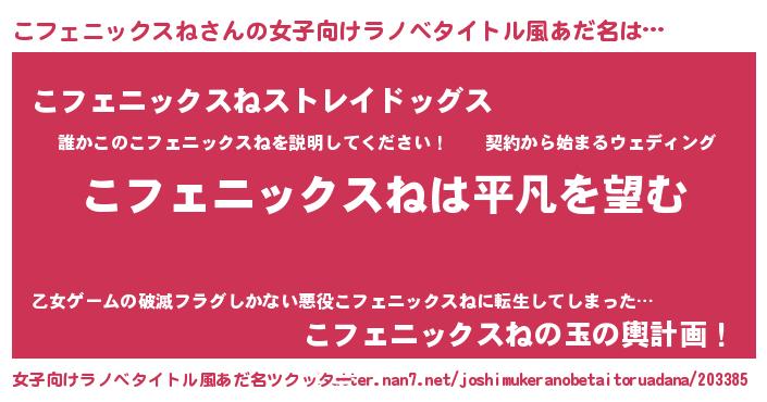 | 意味不明あだ名 | 『とにかく怪しいこフェニックスね』 |