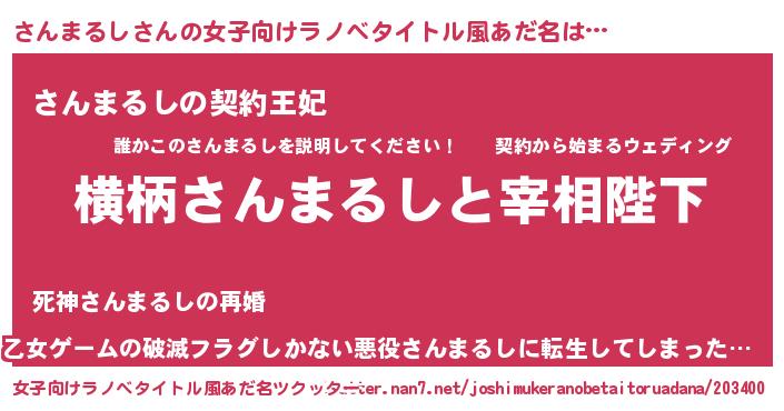 | 男性向けラノベタイトル風あだ名 | 『さんまるしに滅ぼされるだけの簡単なお仕事です』 |