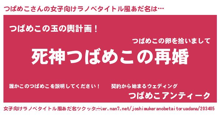 | 男性向けラノベタイトル風あだ名 | 『ノーゲーム・ノーツバメコ』 |