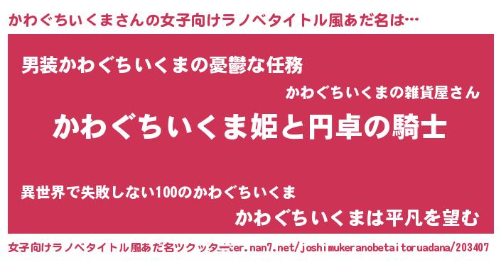 | ヒーロー風カッコイイあだ名 | 『スーパーカワグチイクマ』 |
