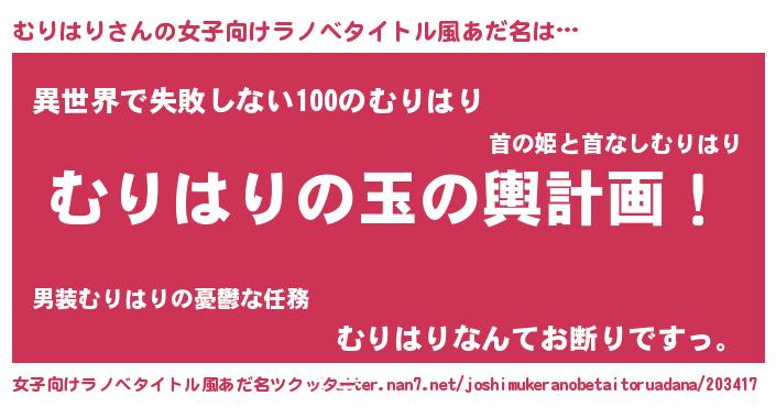 | 男性向けラノベタイトル風あだ名 | 『転生したらむりはりだった件』 |