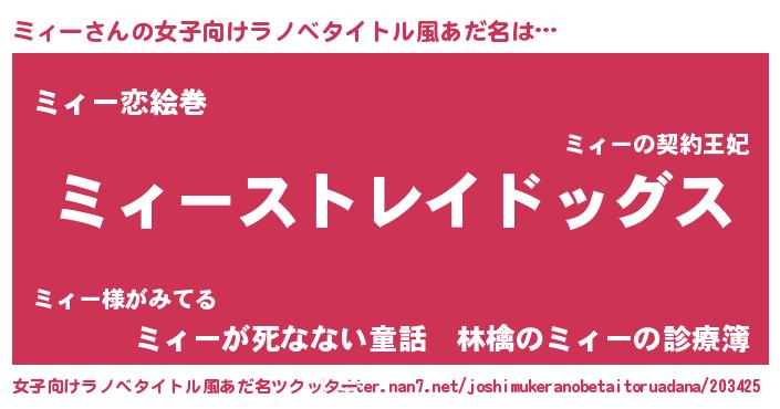 | 男性向けラノベタイトル風あだ名 | 『Re:ミィーから始める異世界生活』 |
