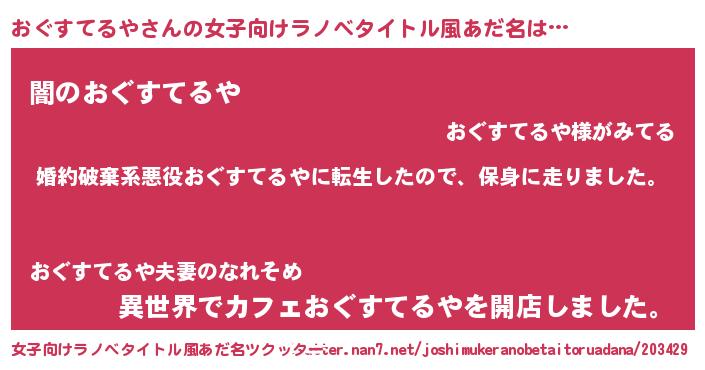 | 胡散臭い通販商品みたいなあだ名 | 『ガンによく効くアガリクス…その名も「おぐすてるや」』 |