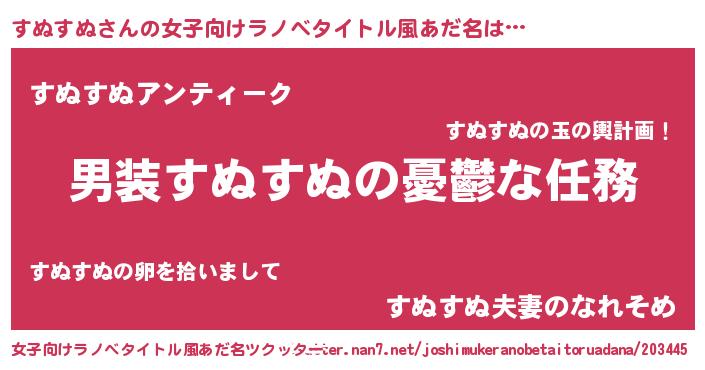 | 男性向けラノベタイトル風あだ名 | 『冴えないすぬすぬの育てかた』 |
