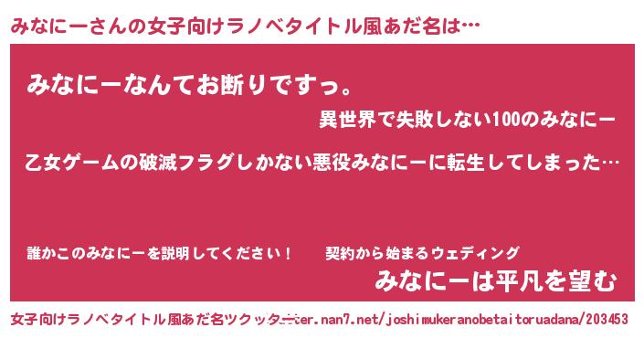 | 意味不明あだ名 | 『住所不定無職みなにー(47歳)』 |