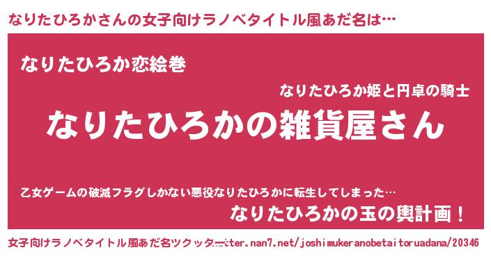 | 男性向けラノベタイトル風あだ名 | 『やはりなりたひろかの青春ラブコメはまちがっている 』 |
