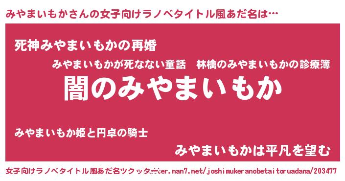 | 意味不明あだ名 | 『自称みやまいもか』 |