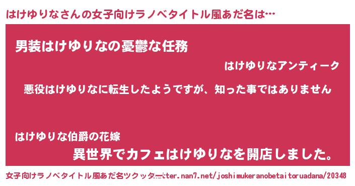 | 男性向けラノベタイトル風あだ名 | 『この素晴らしい世界にはけゆりなを!』 |