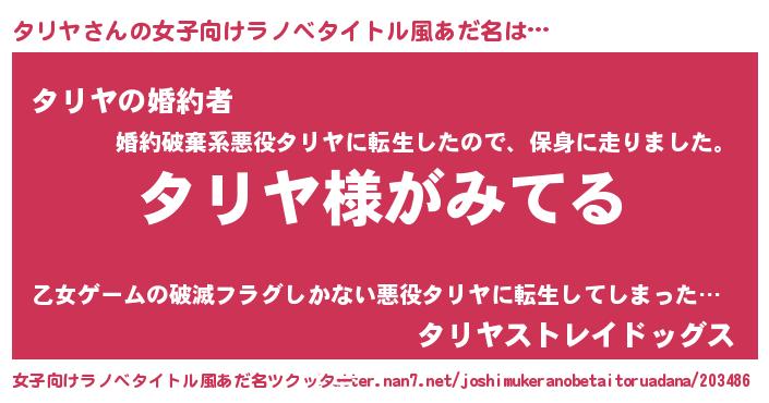 | 意味不明あだ名 | 『とにかく怪しいタリヤ』『自称タリヤ』 |