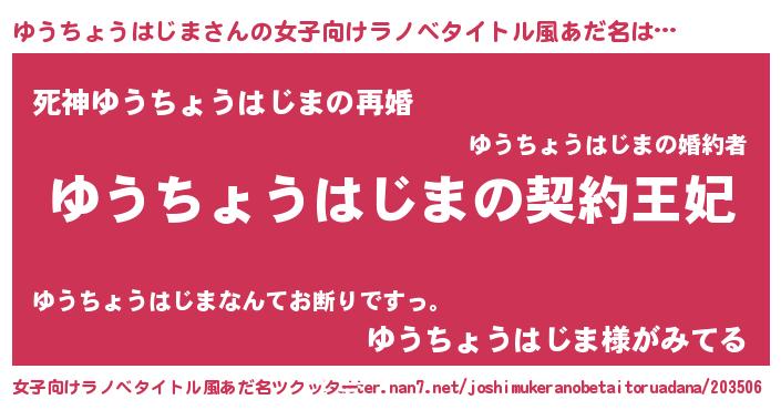 | 男性向けラノベタイトル風あだ名 | 『ゆうちょうはじまという概念が存在しない退屈な世界 』 |