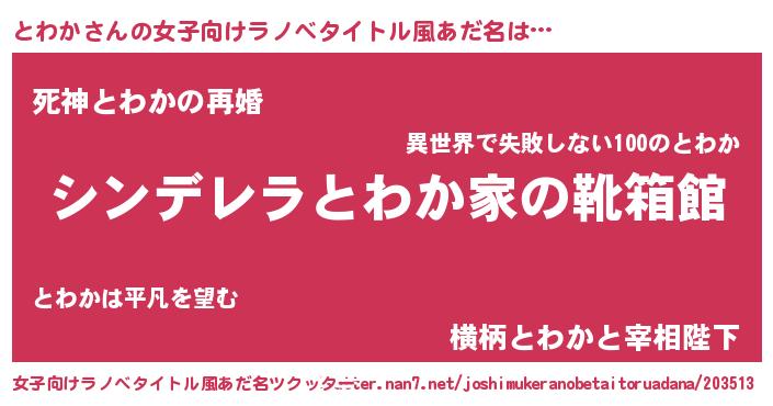 | ヒーロー風カッコイイあだ名 | 『愛の使者とわか』『ネオトワカ』 |