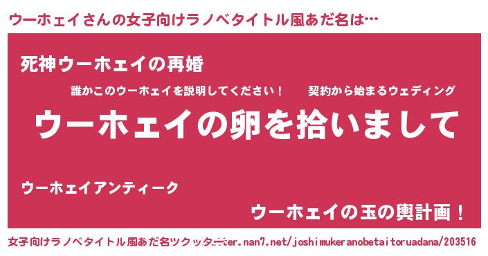 | ピコ太郎風あだ名 | 『ウー十郎』『ウウ太郎』『ウコ次郎』 |