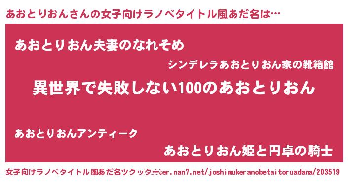 | 男性向けラノベタイトル風あだ名 | 『あおとりおんという概念が存在しない退屈な世界 』 |