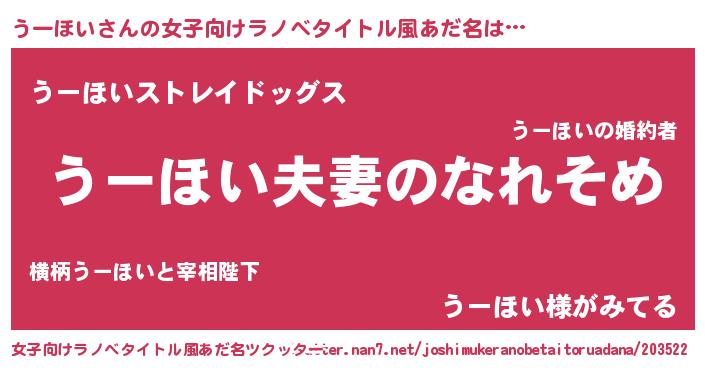 | ヒーロー風カッコイイあだ名 | 『正義の使者うーほい』『炎刃騎士ウー』 |