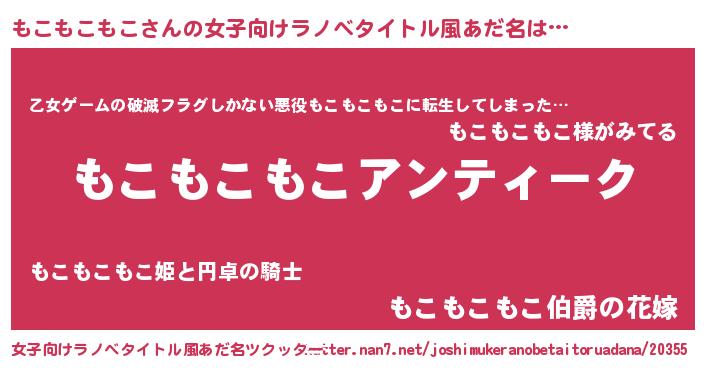 | 意味不明あだ名 | 『自称もこもこもこ』 |
