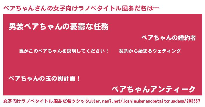 | 男性向けラノベタイトル風あだ名 | 『ベアチャンアートオンライン』 |