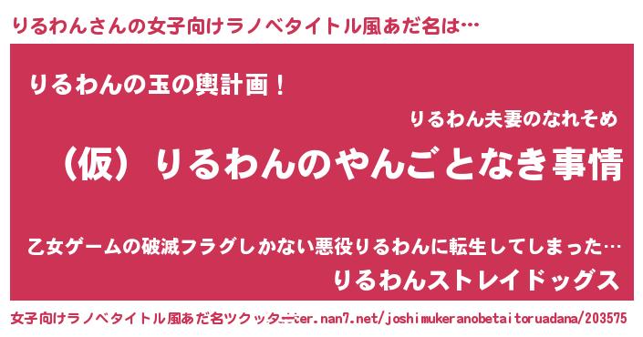 | 胡散臭い通販商品みたいなあだ名 | 『必ず成功する霊験あらたかなお札…その名も「りるわん」』 |