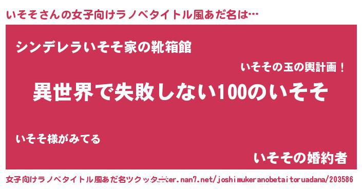 | 男性向けラノベタイトル風あだ名 | 『いそそという概念が存在しない退屈な世界 』 |