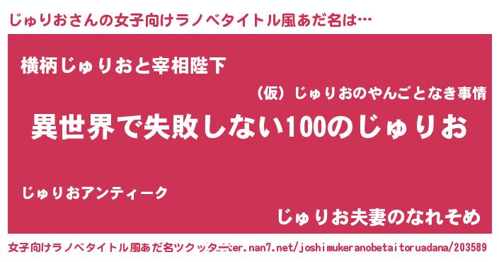 | 男性向けラノベタイトル風あだ名 | 『じゅりおという概念が存在しない退屈な世界 』 |
