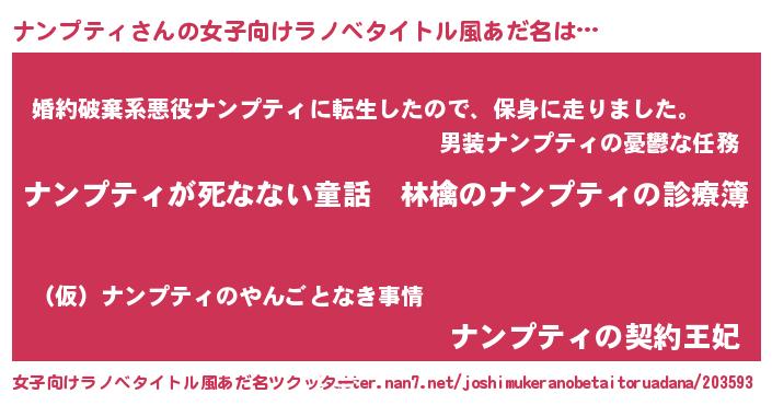 | 男性向けラノベタイトル風あだ名 | 『魔弾の王とナンプティ』 |