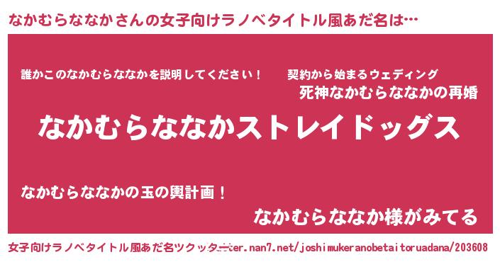 | 男性向けラノベタイトル風あだ名 | 『Re:なかむらななかから始める異世界生活』 |
