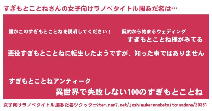 | 意味不明あだ名 | 『住所不定無職すぎもとことね(5歳)』 |
