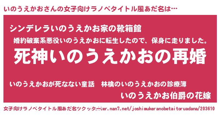 | 男性向けラノベタイトル風あだ名 | 『ノーゲーム・ノーイノウエカオ』 |