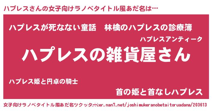 | 胡散臭い通販商品みたいなあだ名 | 『幸せが訪れる高級そうな絵画…その名も「ハプレス」』 |