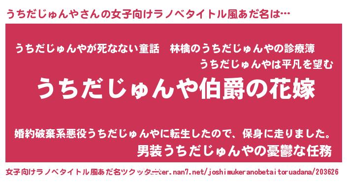 | 男性向けラノベタイトル風あだ名 | 『やはりうちだじゅんやの青春ラブコメはまちがっている 』 |