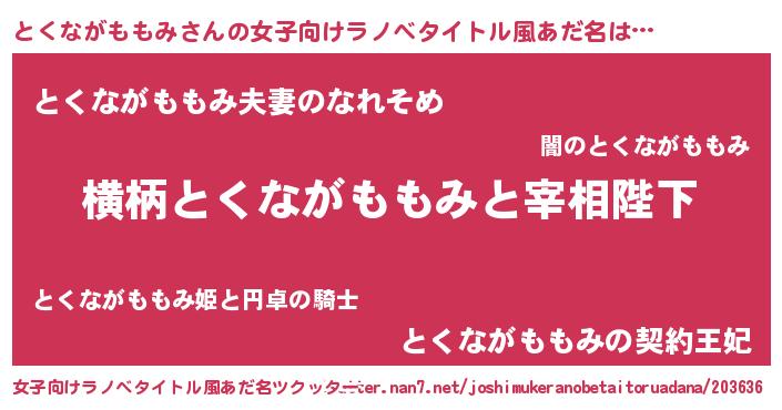 | 男性向けラノベタイトル風あだ名 | 『とくながももみに滅ぼされるだけの簡単なお仕事です』 |