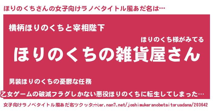 | 男性向けラノベタイトル風あだ名 | 『やはりほりのくちの青春ラブコメはまちがっている 』 |
