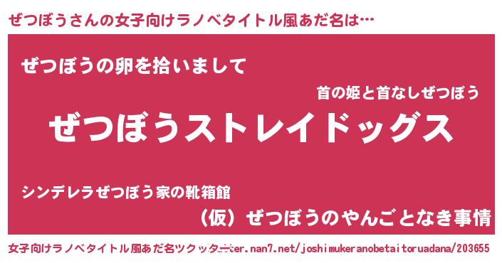 | ピコ太郎風あだ名 | 『ゼツ十郎』『ゼコ史郎』『ピゼ八郎』 |