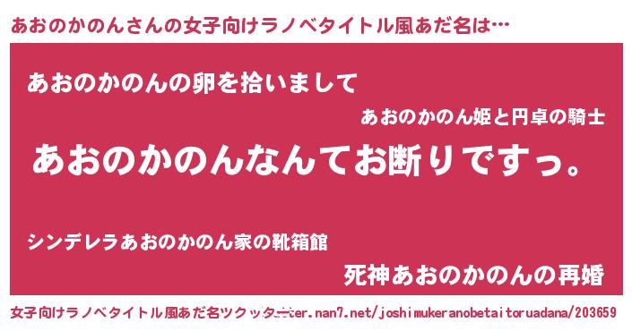 | 男性向けラノベタイトル風あだ名 | 『魔法科高校のあおのかのん』 |