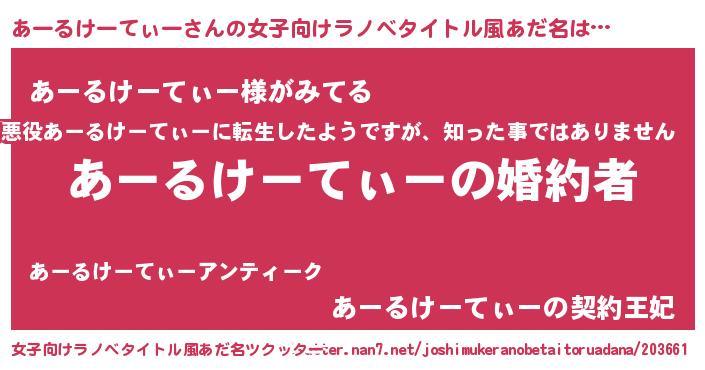 | ファンタジー風あだ名 | 『エターナルアールケーティーー』 |