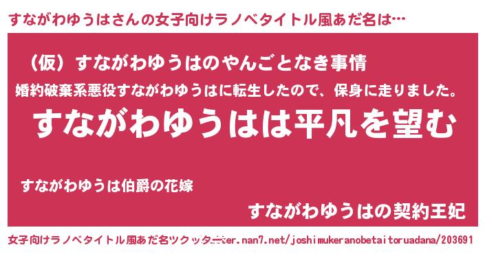 | 胡散臭い通販商品みたいなあだ名 | 『信頼と実績のサプリメント…その名も「すながわゆうは」』 |