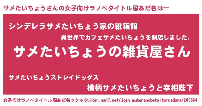 | 意味不明あだ名 | 『サメたいちょうフォーエバー』 |