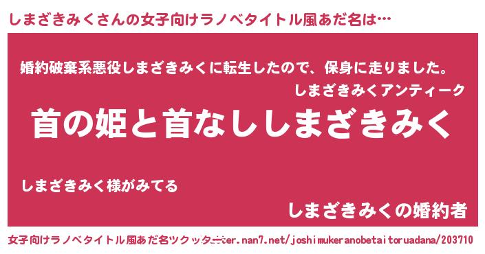 | 男性向けラノベタイトル風あだ名 | 『はたらくしまざきみくさま!』 |