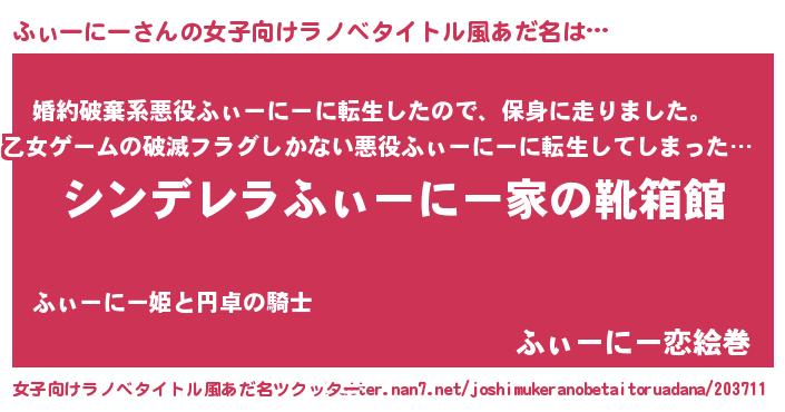 | 男性向けラノベタイトル風あだ名 | 『冴えないふぃーにーの育てかた』 |