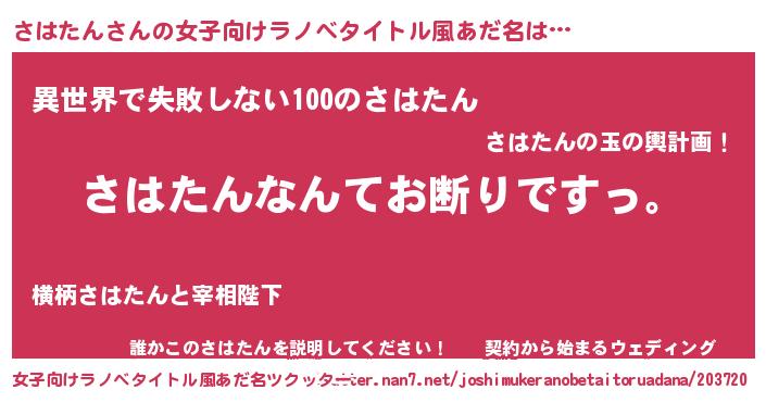 | 胡散臭い通販商品みたいなあだ名 | 『ガンによく効く高麗人参…その名も「さはたん」』 |