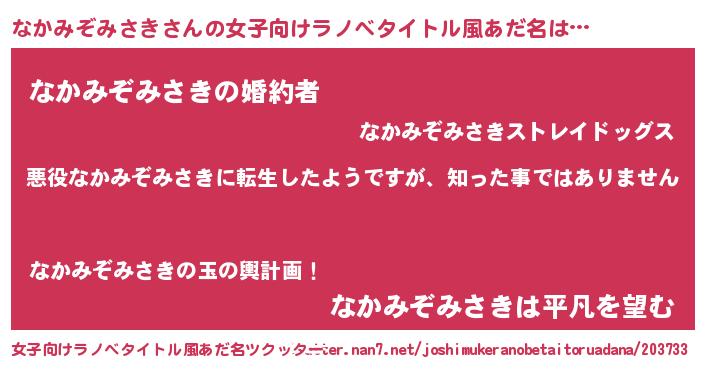 | 男性向けラノベタイトル風あだ名 | 『この素晴らしい世界になかみぞみさきを!』 |
