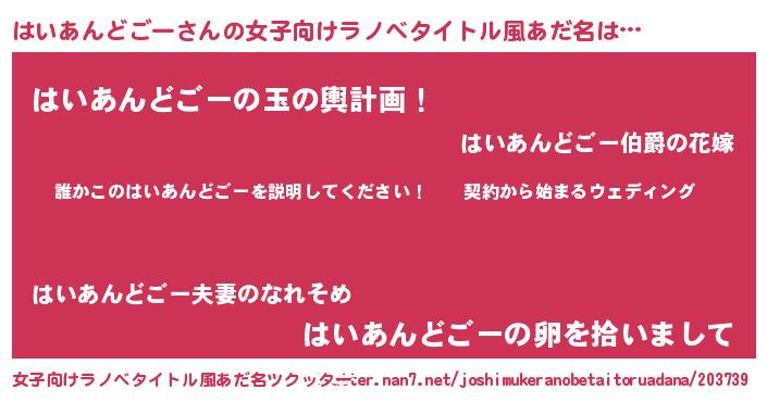 | 2回繰り返すあだ名 | 『はいはい』『わさわさ』『ははいい』 |