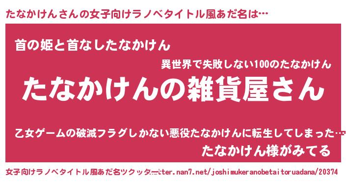 | ファンタジー風あだ名 | 『エターナルタナカケンー』『タナフェル』 |