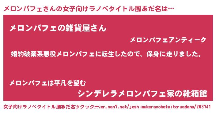 | 男性向けラノベタイトル風あだ名 | 『メロンパフェスレイヤー』 |