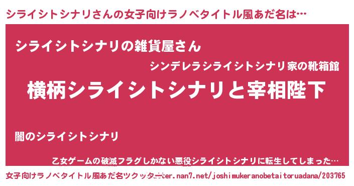 | 意味不明あだ名 | 『シライシトシナリフォーエバー』 |