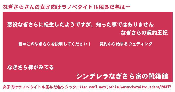 | 胡散臭い通販商品みたいなあだ名 | 『億万長者になれるブレスレット…その名も「なぎさら」』 |