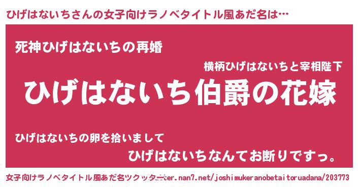 | 意味不明あだ名 | 『ひげはないちフォーエバー』 |
